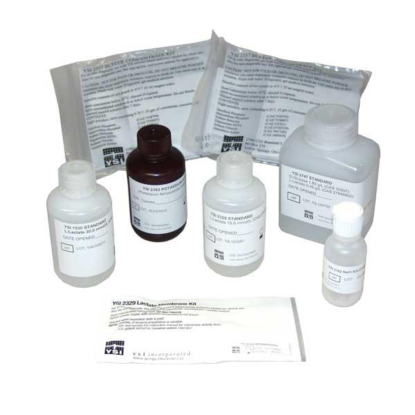 Starter kit containing reagents and membranes for calibrating and running lactate samples on the YSI 2900C Biochemistry Analyzer.